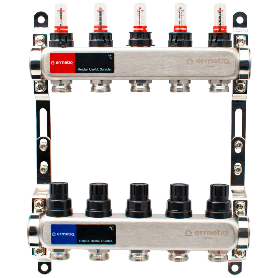 Nerezový rozdeľovač, 5-okruhový s izoláciou a prietokomerom, eurokužeľ, 1"x3/4"