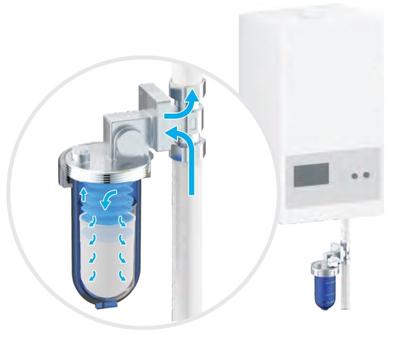 Vertikálny filter proti vodnému kameňu pre vykurovacie systémy 1/2"